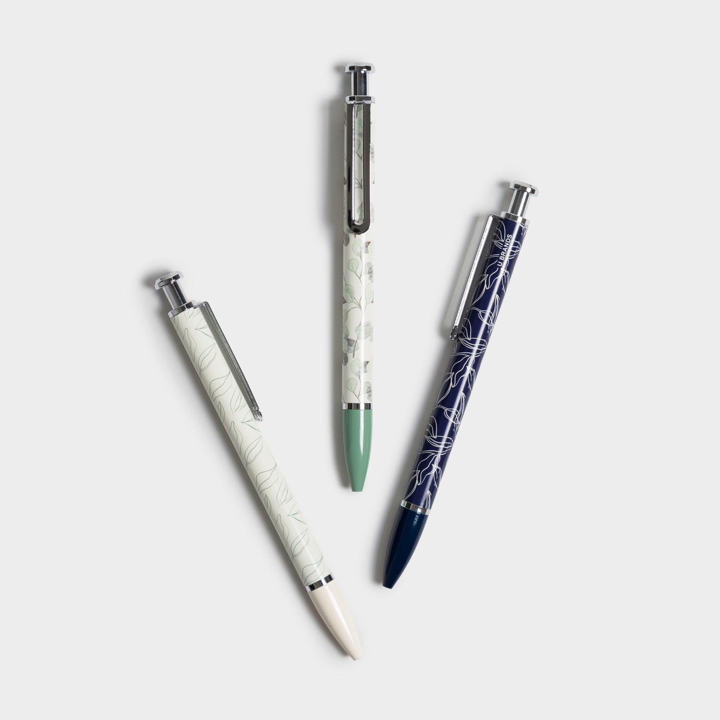 Set of 3 ballpoint pens | Bold (1 mm) point | Black ink | Smooth, bold lay-down, quick-dry non-bleed ink | Weighted metal barrel body, signature U Clip, painted metal hardware | 3 unique Arid Ivy designs | Packaging is made of FSC-certified and other controlled material (FSC® License Code: FSC-C152115) | Item ID: 3165U04-24