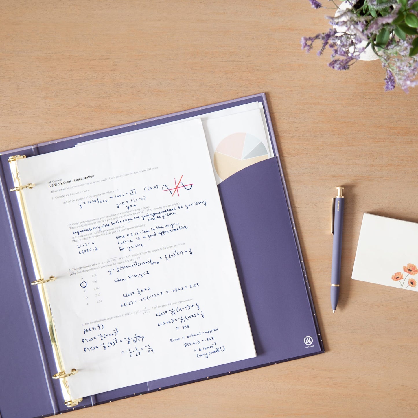 1" fashion binder | Holds standard 8.5" x 11" paper | Durable paper hardcover with matte soft touch finish | Includes 2 interior pockets | 3 durable gold metal O-rings | Unique Celestial design | This product is made from FSC-certified paper (FSC® License Code: FSC-C152115) | Item ID: 4094U04-12