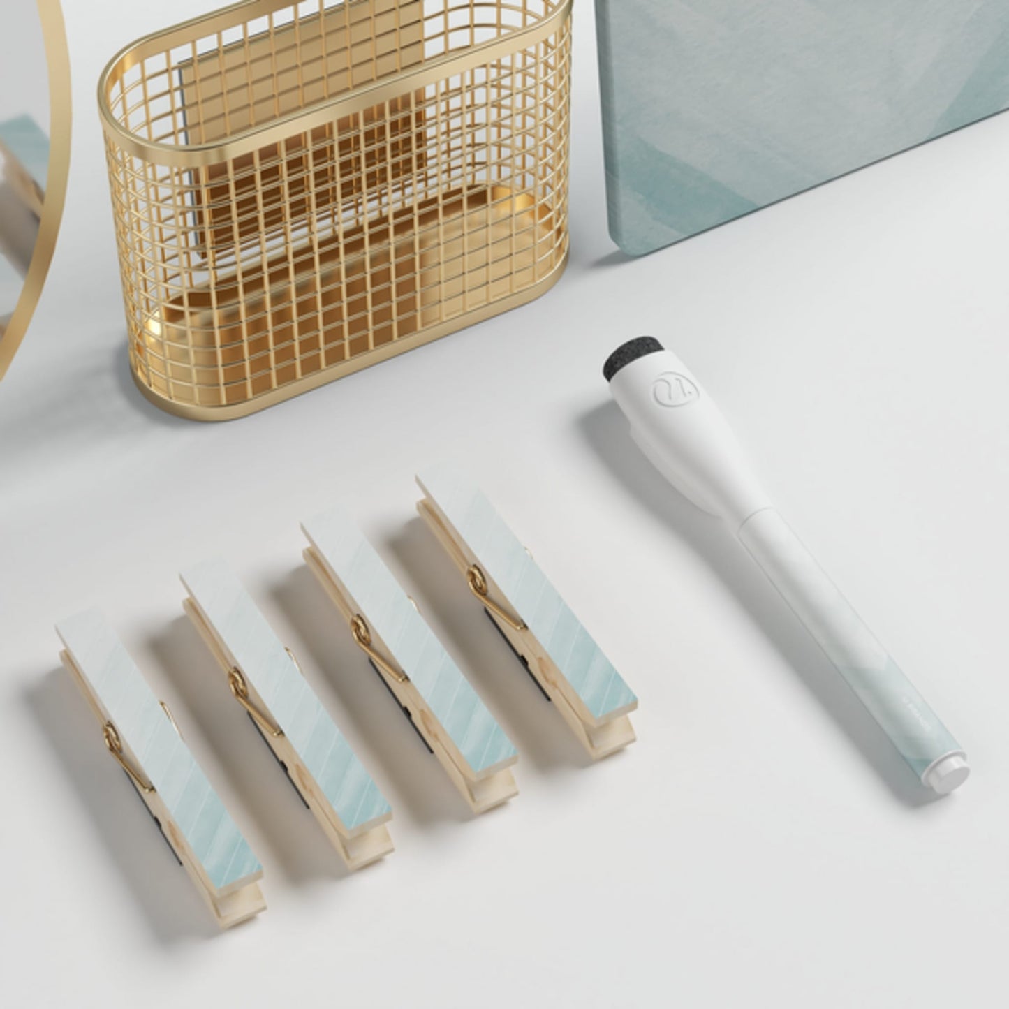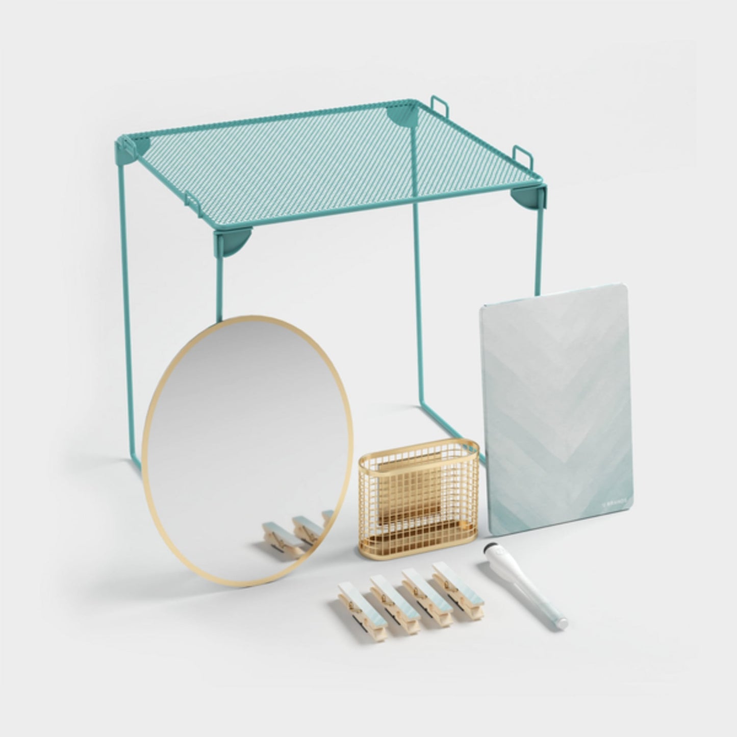Set of 9 | 12" stackable locker shelf, 1 magnetic utility cup, 1 dry erase board, 1 magnetic mirror, 4 clothespin magnets, and 1 dry erase marker | Premium dry erase surface resists staining | Magnetic marker with a built-in eraser on a contoured cap and nontoxic ink (conforms to ASTM D4236) | Shelf holds up to 25 pounds of weight | Strong magnetic backing | Durable construction | Mix-and-match with other products from our locker collection | Item ID: 5070U01-06