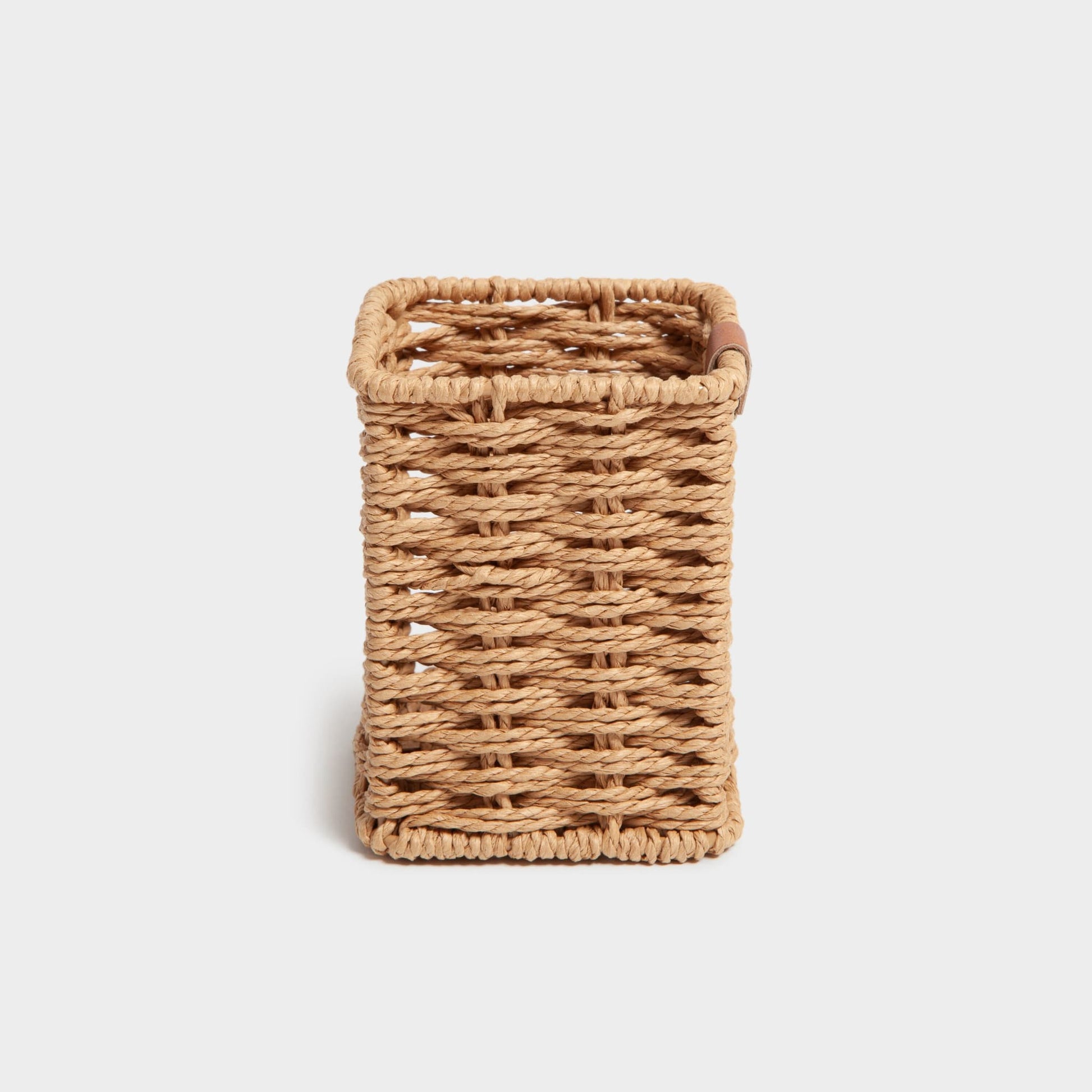3.2" x 3.2" x 4.2" pencil cup | Single compartment | Handwoven natural rope material with a vegan leather U Brands tag | Ideal size for pens, pencils, scissors | Artisan weave design | Pair with other items from the Woven Collection for the complete look | Item ID: 6087U01-16