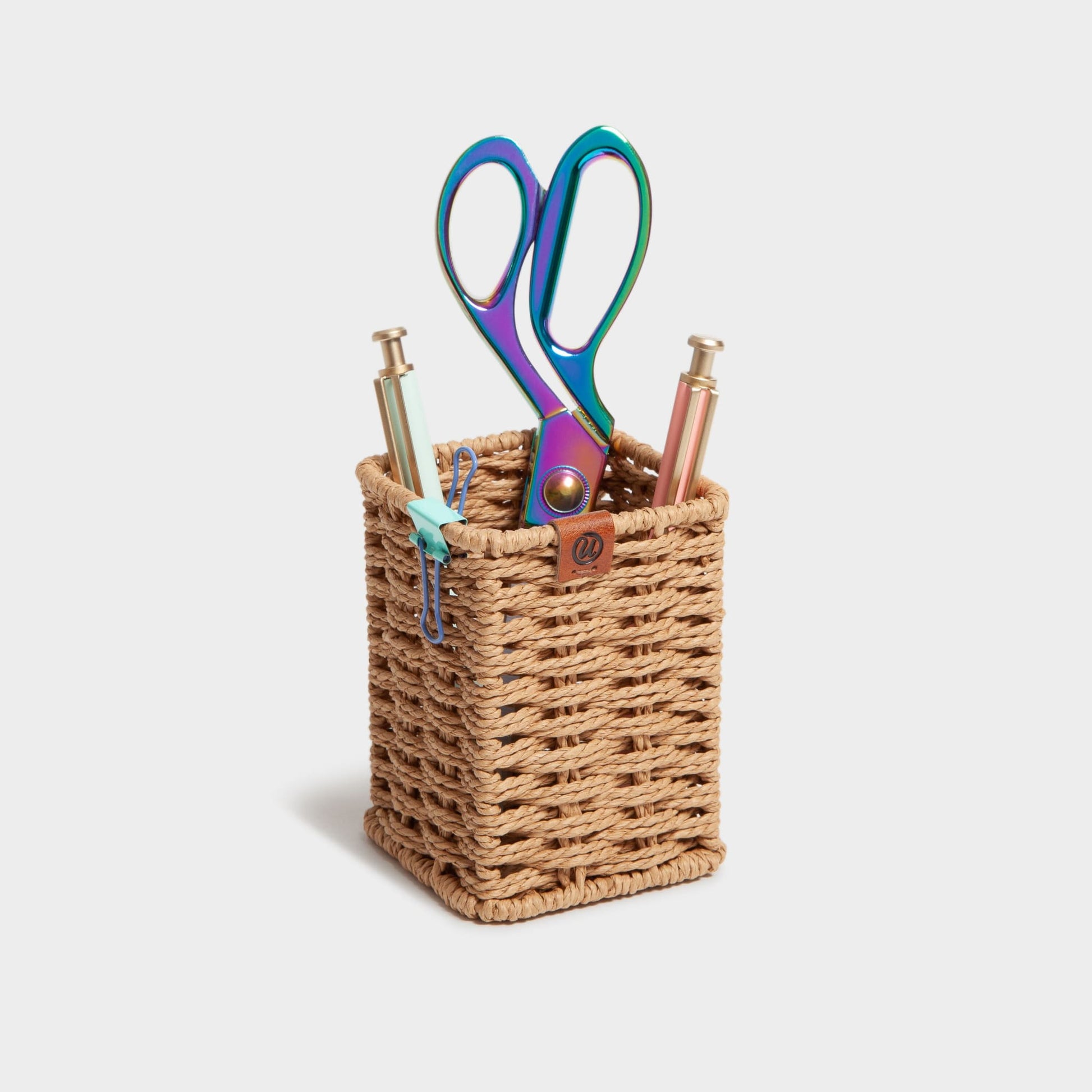 Keep your writing essentials organized with our Woven Pencil Cup. Crafted with handwoven details, this cup adds a touch of charm to any desk. Whether you're jotting down notes, sketching ideas, or planning your day, this cup is the perfect companion to keep your creative tools within reach.