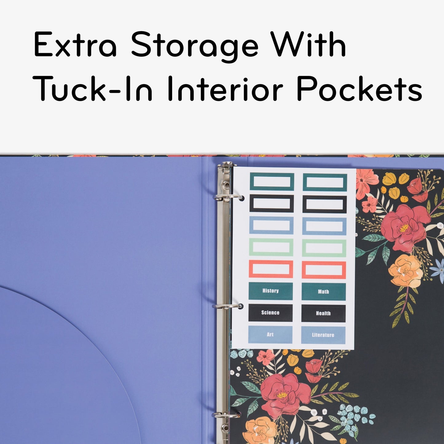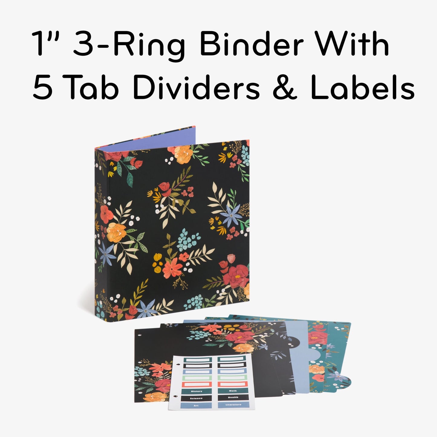 Fashion binder with 5 tab dividers and 16 labels (6 preprinted and 10 blank) | Holds standard 8.5" x 11" paper | Durable paper hardcover with matte soft touch finish | Dividers feature 1/5-cut tabs providing 5 positions for convenient labeling and organization | Includes 2 interior pockets | 3 durable silver metal O-rings | 5 distinctive divider styles tailored to complement your binder's cover | This product is made from FSC-certified paper (FSC® License Code: FSC-C152115) | Item ID: 6176U01-06