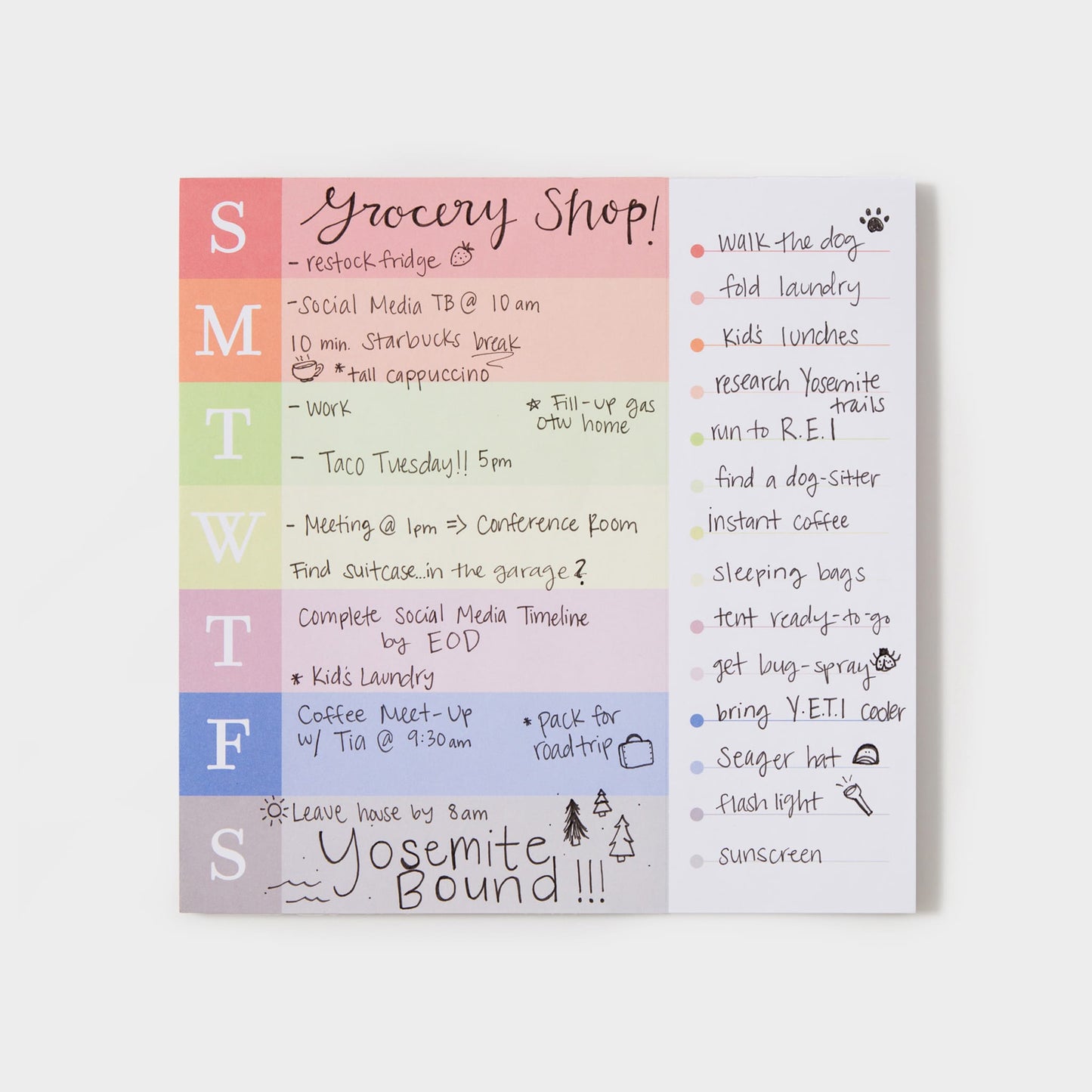 Say hello to your new sidekick, the Artist Touch Weekly Notepad & Checklist, where functionality meets a splash of rainbow for your daily plans. Picture this: a sassy little square of organized joy, chilling on your desk, waiting to catch all your brilliant musings and to-dos. And that little tear-off list on the side? Just the right size for your pocket, making sure your genius ideas don't stay desk-bound. Perfect for capturing your most daring plans or, you know, reminding you to buy milk.
