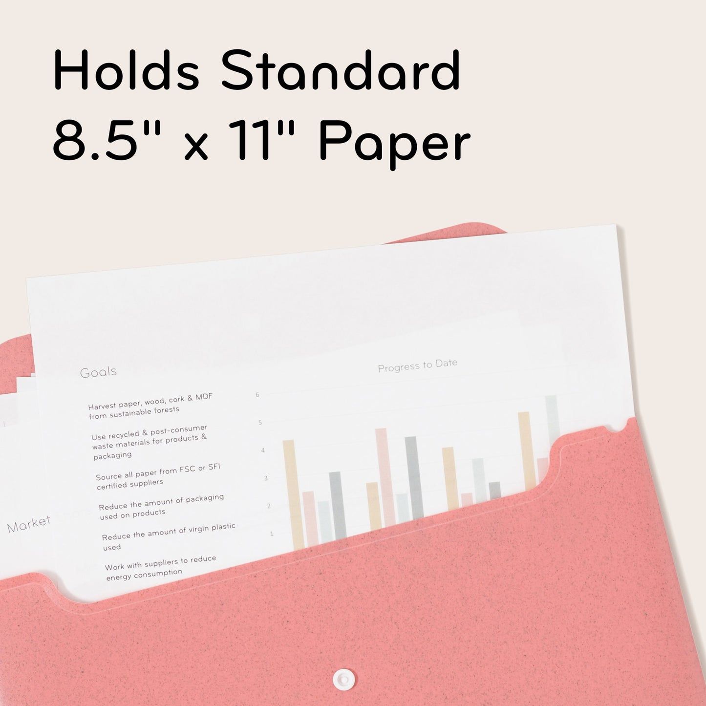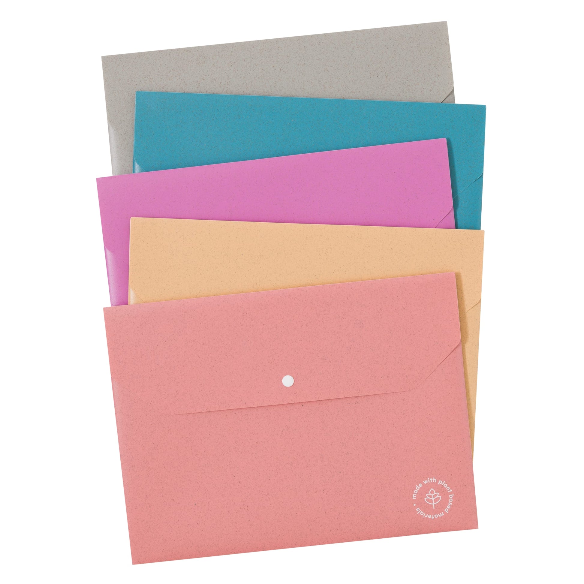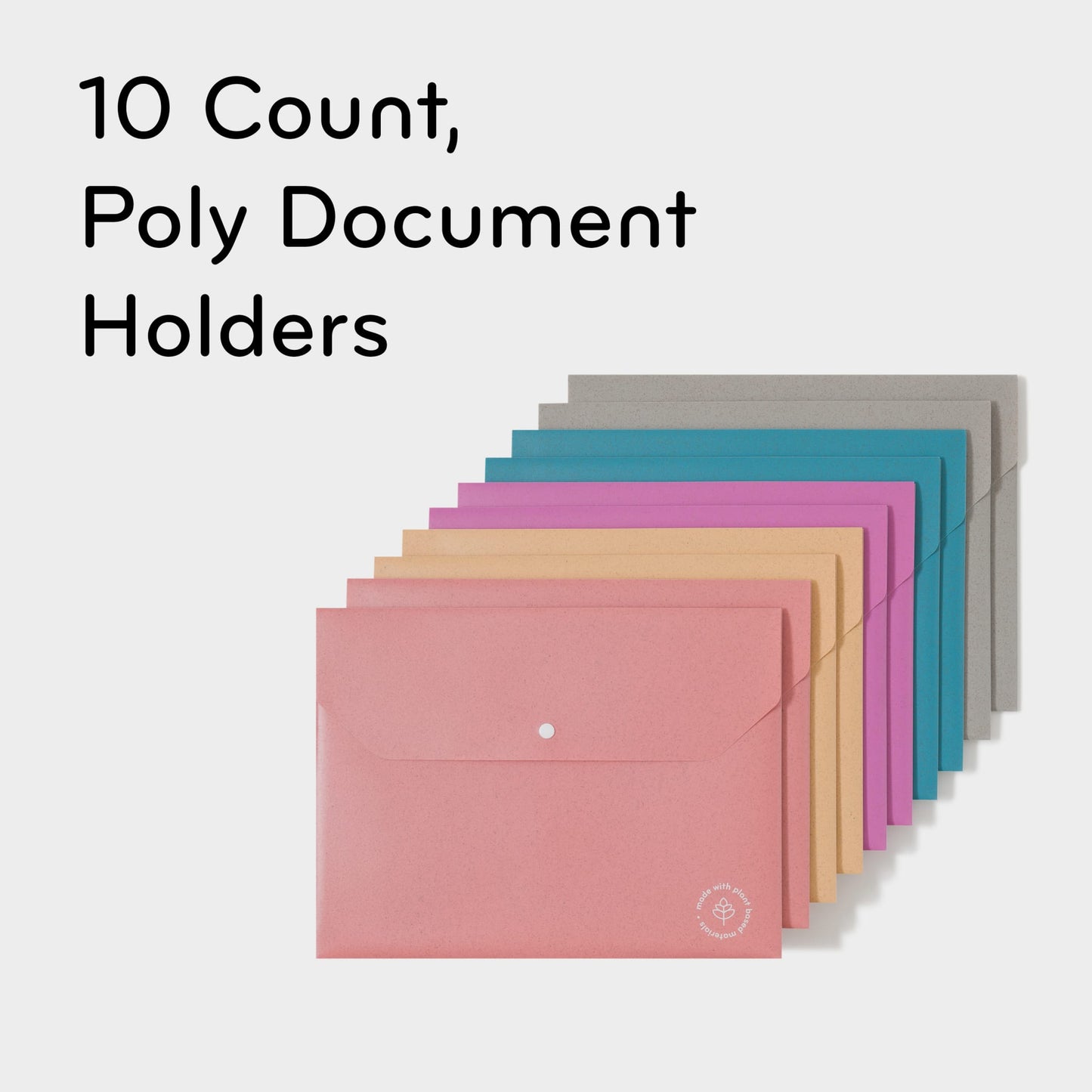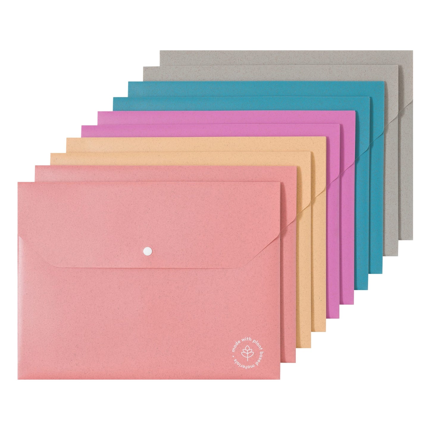 Set of 10 U-Eco document holders | Holds standard 8.5" x 11" paper | Durable, planet-friendly poly wheat straw material | Single pocket | Protective flap with recycled button/elastic closure | 5 vibrant colors | Earth-conscious U-Eco Collection uses less plastic | Item ID: 6601U01-12