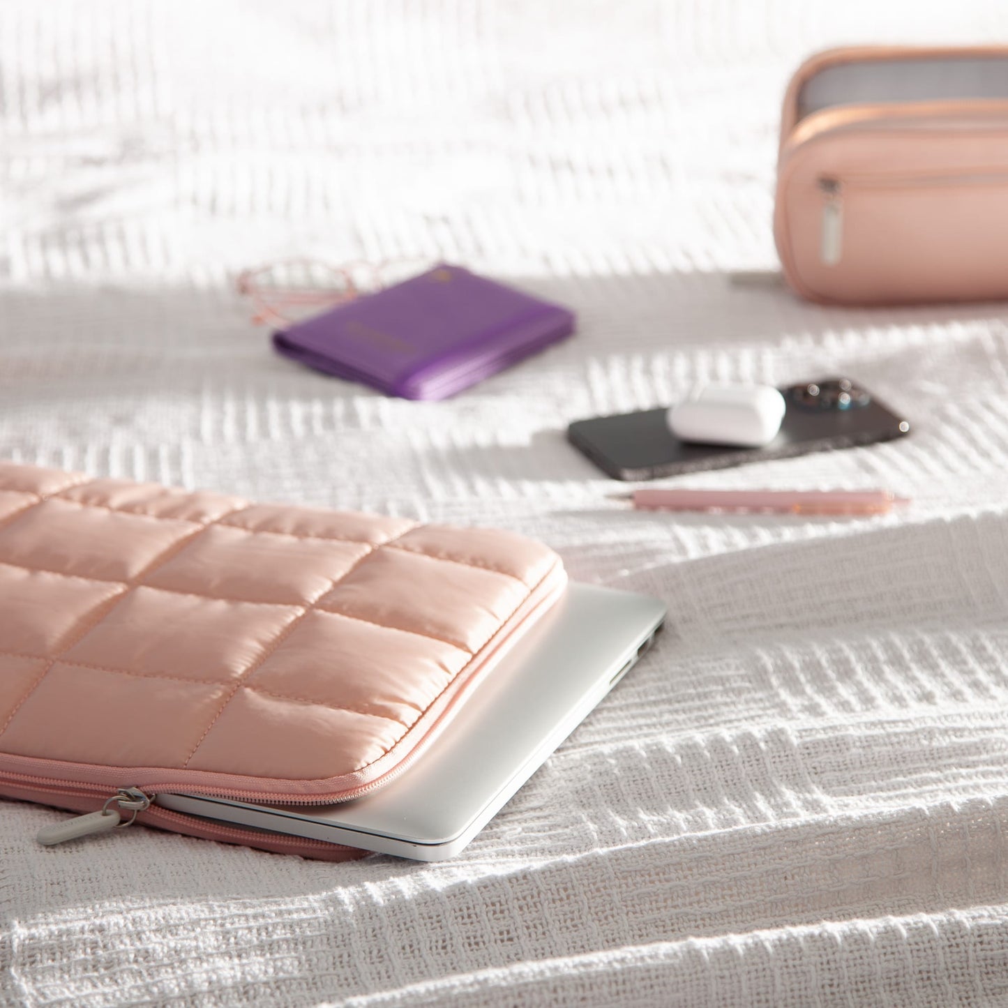 Wrap your tech in a cozy hug with our Large Nylon Puffer Laptop Sleeve. Padded for protection and styled for the streets, this sleeve keeps your tech safe and sound wherever you go. Perfect for those who love a soft landing for their gadgets.