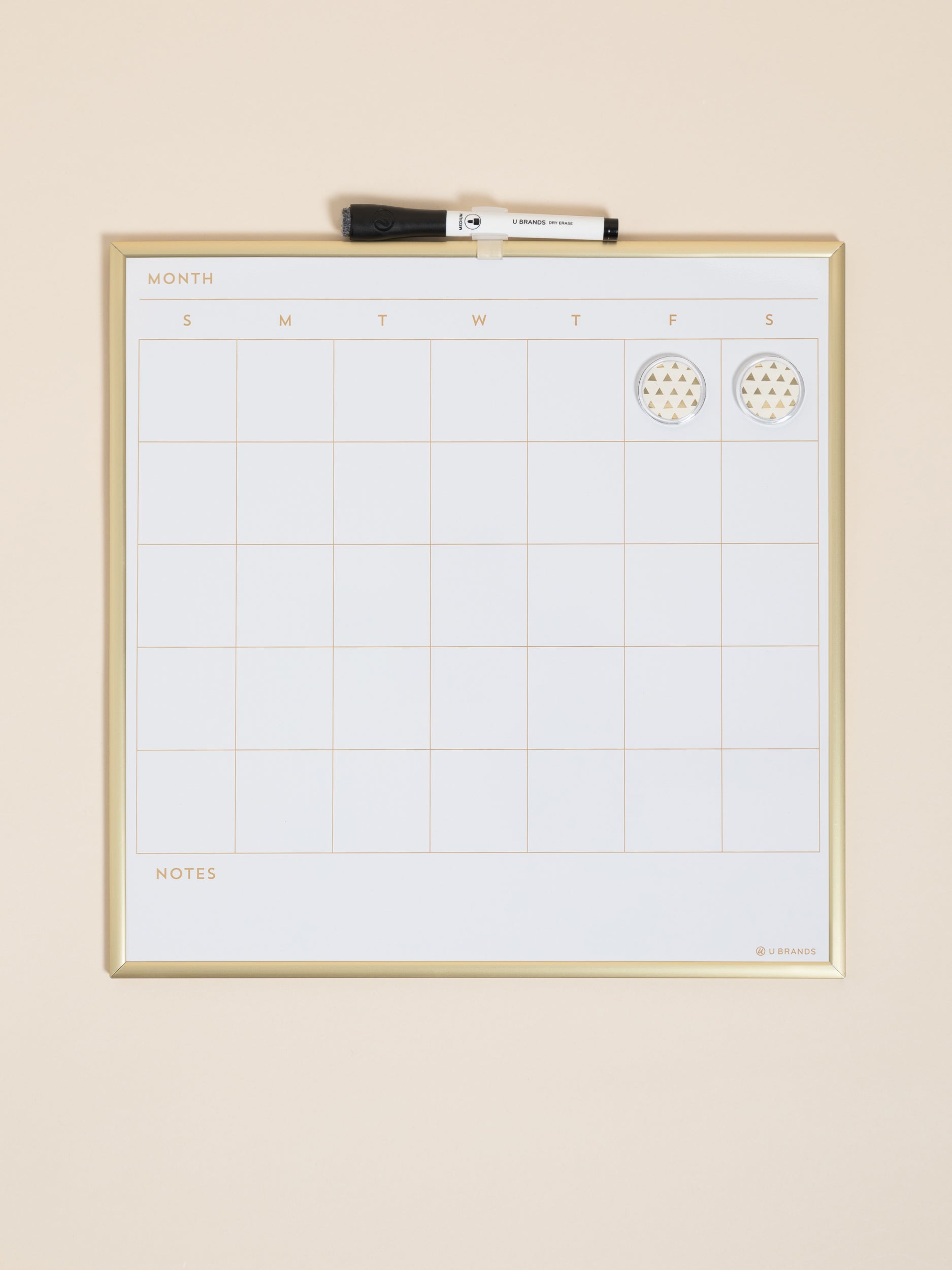 Gold Framed Dry Erase Calendar Board, 14" x 14"