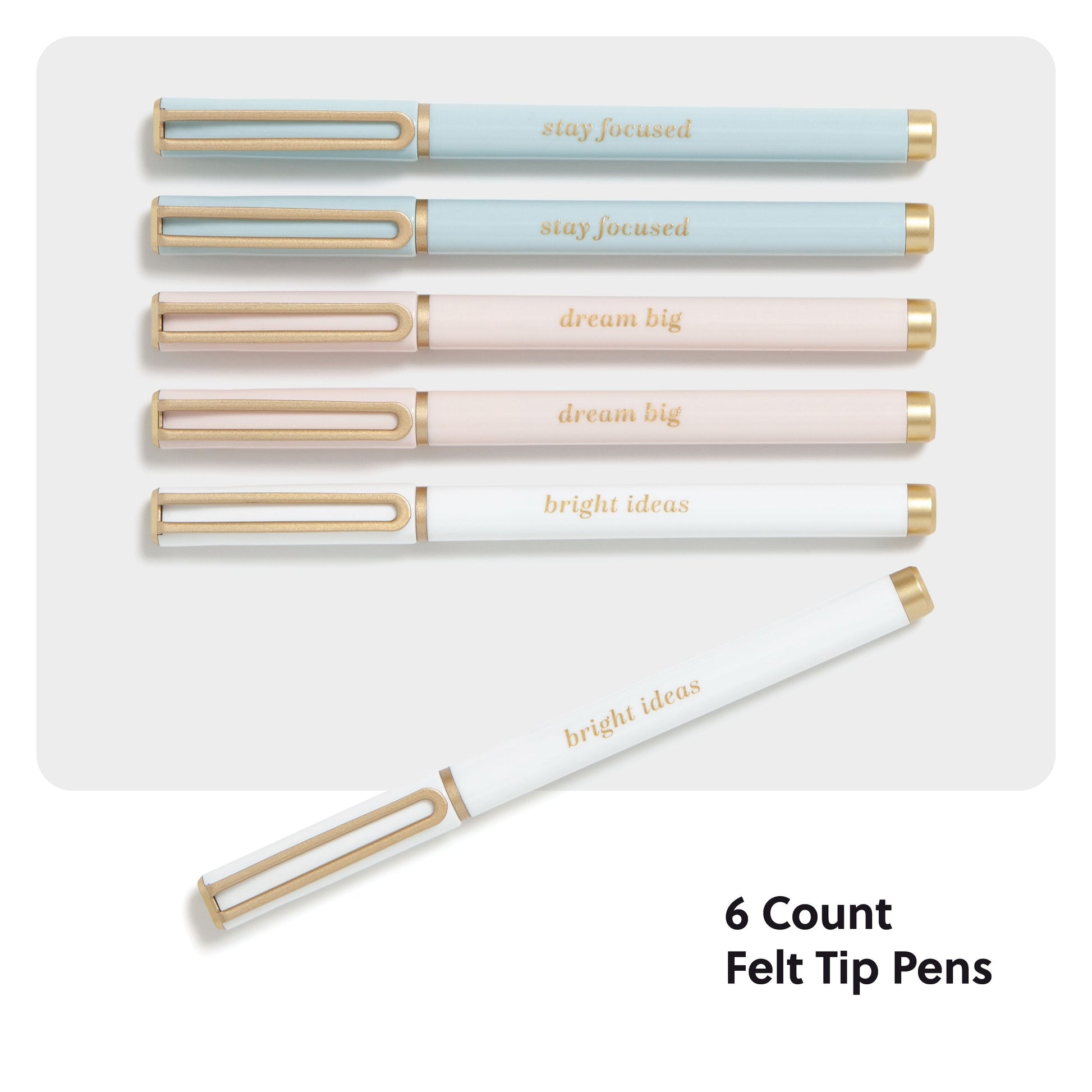 U Brands Catalina Felt Tip Pens, 6 Count, Classic Pretty Pastels, Medium (0.7 mm) Point, Black Ink